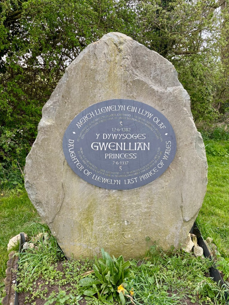 As well as this memorial to Princess Gwenllian there are bilingual leaflets and displays within the church at Sempringham just a few footsteps from the memorial. The picture above was taken in April and daffodills had been left for the princess. Find out more about her history in the link below:
